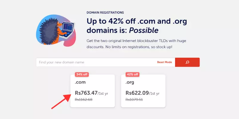 - .COM domain is available at Rs.763.47 for the first year instead of Rs.1162.68.